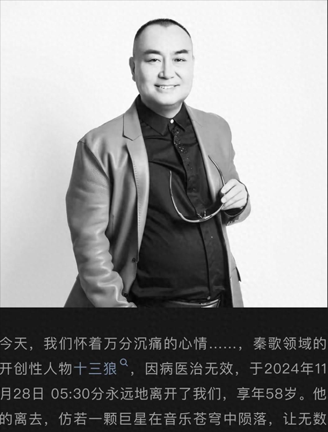 11月28日清晨5:30,被大众誉为“秦歌第一人”的十三狼,因病离世。
