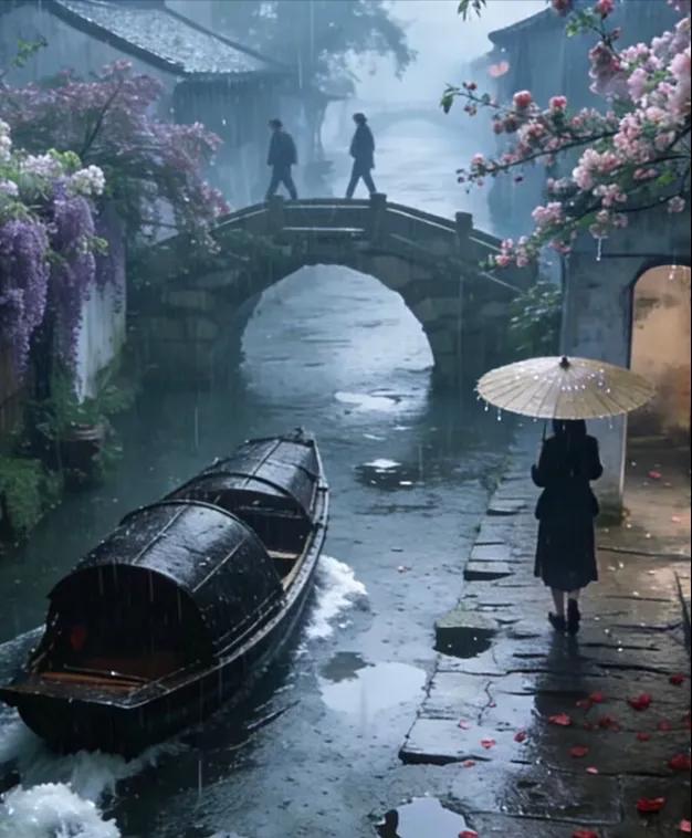 游莺虽远,暗觅归程。幻风同影,雨同伞,路同行。