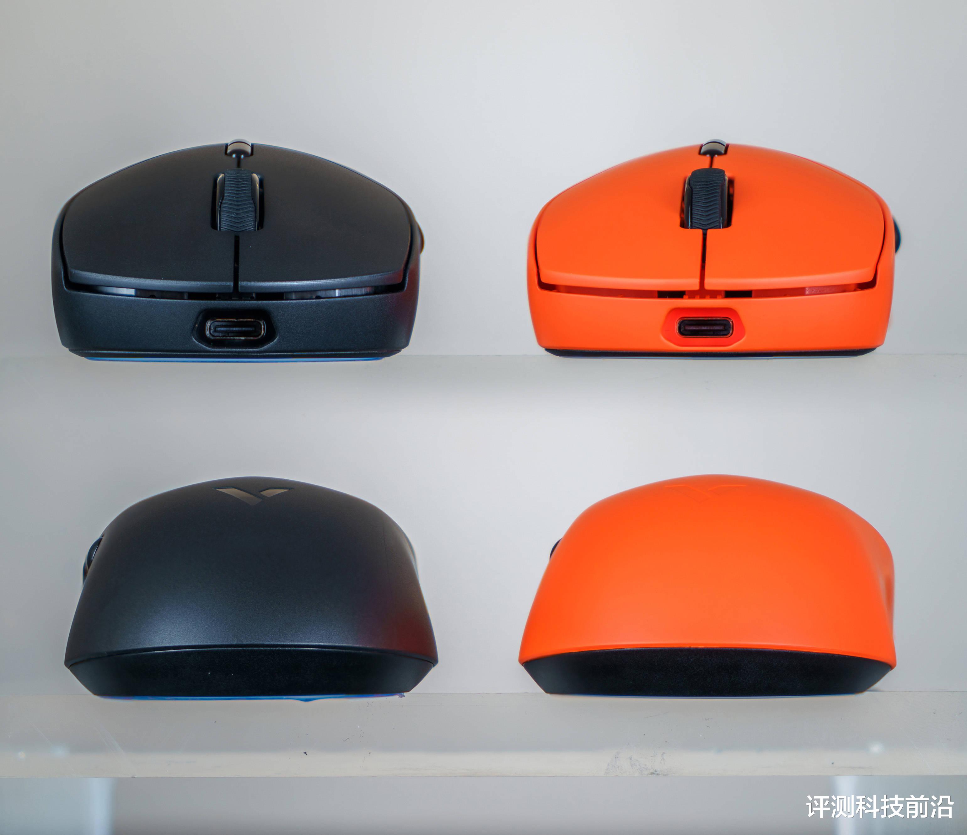 ▼因为VT1系列是右手对称中小手鼠标,所以左右结构是差不多的,因为是低背设计,掌托明显更低,给掌根处留足空间,兼容更多手型,移动也更灵活;VT1系列一共有三种配色