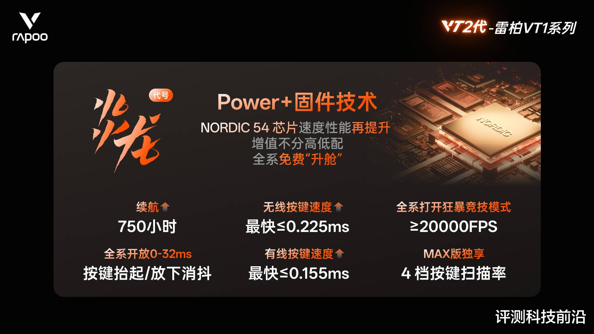 ▼最近雷柏为其推出的全球首发Nordic 54系列芯片的VT1二代无线电竞鼠标推出了Power+(代号:炎龙)的固件技术,不分高低配,标准版、MAX版均可通过OTA增值。