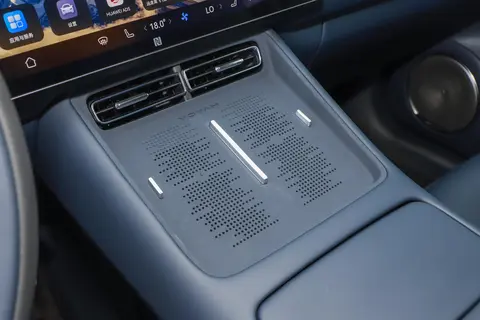 实用配置的铺陈更显贴心:悬浮式全液晶仪表显示清晰,29 英寸 AR-HUD 将导航信息直接投射在前挡风,开车时无需低头看屏;三辐式平底方向盘握感扎实,怀挡式换挡机构节省出更多储物空间;副仪表台的 50 瓦无线充电板充电迅速,副驾侧的隐藏式挂钩刚好适配外卖袋与购物袋。中央扶手箱内的 7 升车载冰箱堪称点睛之笔,-6℃至 50℃的宽幅温控范围,搭配 24 小时离车不断电功能,夏天冰饮、冬天热食随取随用。