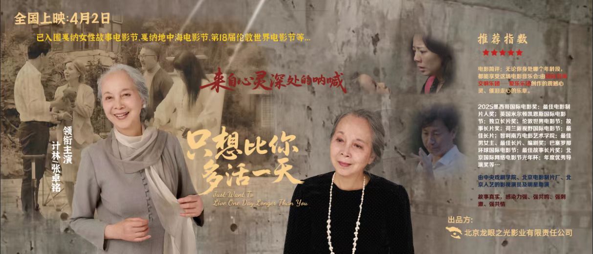电影《只想比你多活一天》通过计林老师深入接触、深度共情自闭症儿童(“星星的孩子”)及其家庭艰辛的养育历程,以其精湛的表演,示现伟大的母亲形象。将患者及其家庭的痛与苦楚向世界敞开,通过电影的表现手法呼唤社会给予更多的关注和爱,温暖疗愈更多身陷苦难的人们。由计林、张卓铭主演的剧情电影,荣膺 2025 墨西哥国际电影奖、最佳电影制片人奖,英国米尔顿凯恩斯国际电影节独立长片奖,伦敦世界电影节故事长片奖,荷兰新视野国际电影节最佳长片,智利南方电影艺术学院最佳最女主、最佳长片、编剧奖,巴塞罗那环球国际电影节最佳故事长片奖,北京国际网络电影节光年杯年度优秀导演奖等多项奖项。