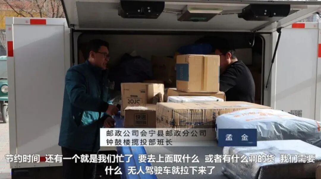 在甘肃临夏、会宁等地,无人车承担县乡之间的固定线路运输,实现邮件的“甩点直投”,在业务高峰期有效缓解了运力压力;