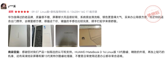 比如有用户评价说,“入手华为鸿蒙系统的笔记本,是在横向比较了很多之后做出的选择。使用体验目前来说非常满意。 使用中高级感拉满,完全展开可以是一个18寸的显示电脑,也可以对折变成两个小屏幕,上半屏读书,下半屏做读书笔记。还可以把键盘放上去,在动车上就可以当13寸的小笔记本办公。 真心不错。”