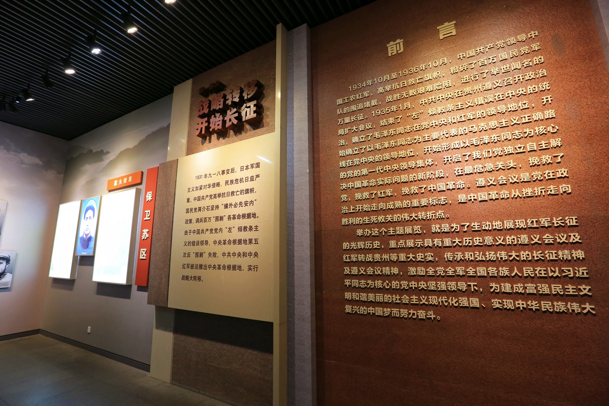 展馆分为“战略转移 开始长征”“遵义会议 伟大转折”“四渡赤水 出奇制胜”“勇往直前 走向胜利”和“红军长征 精神永存”五个部分,历史文物丰富,图文资料翔实,配合雕塑、影像等场景还原,真实展现了当年遵义会议和红军长征的伟大历史。