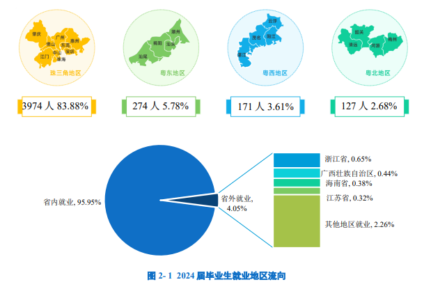 更值得一提的是,广农工商的毕业生是区域经济发展的“主力军”。数据显示,学校2024届毕业生中,有95.95%选择了在广东省内就业,而这其中,又有83.88%的毕业生流向了经济活力最强的珠三角地区,广农工商的学生不仅找到了工作,而且是找到了在经济发展前沿、有着广阔发展空间的工作。