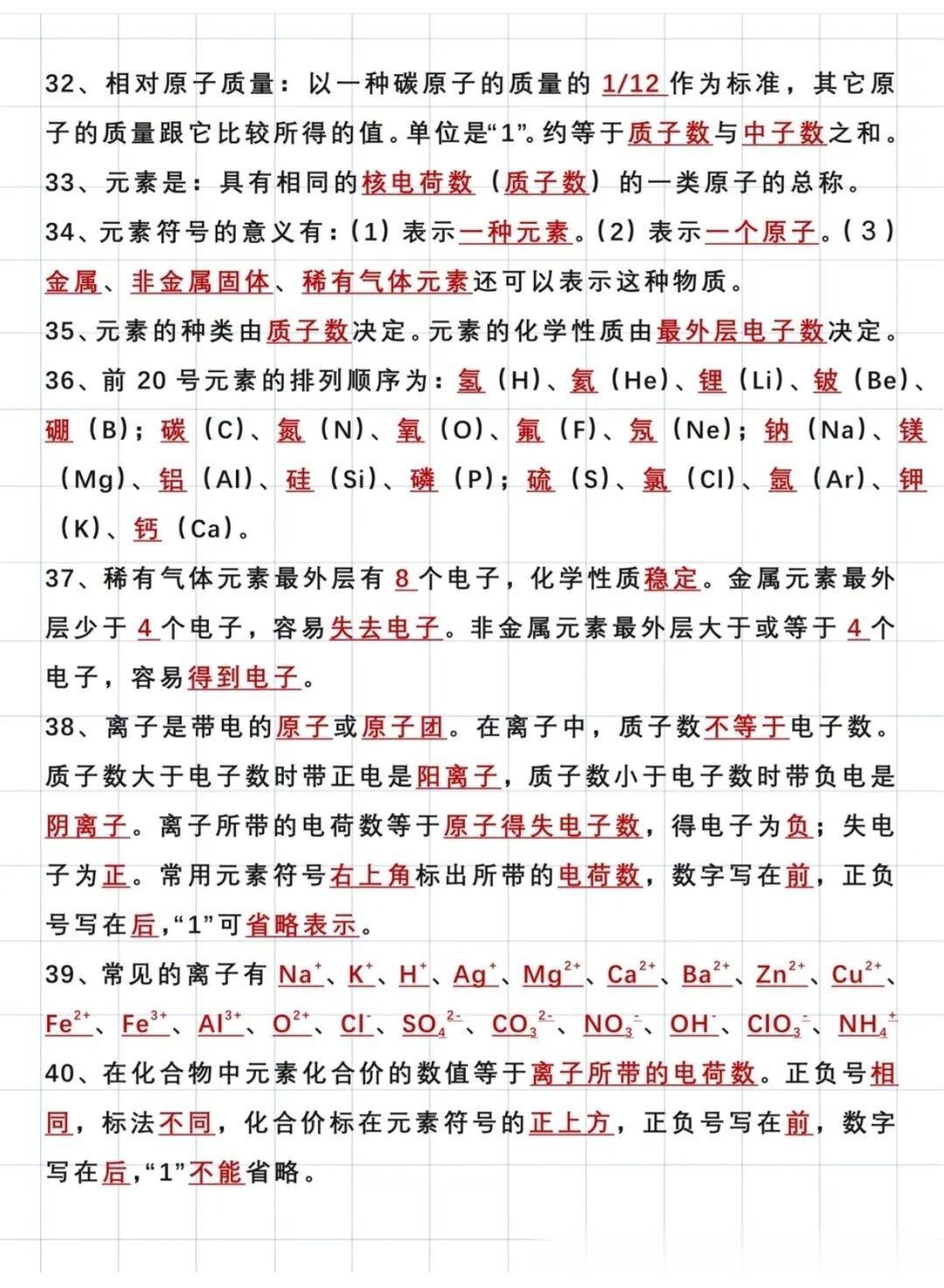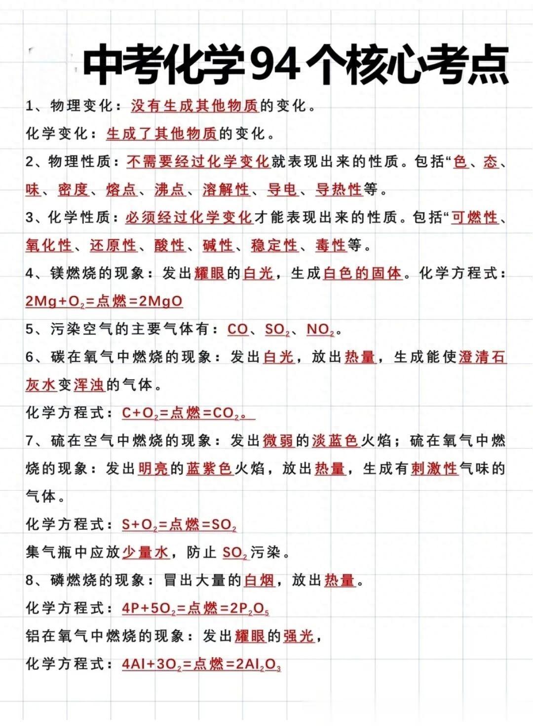 中考化学必备94个核心考点