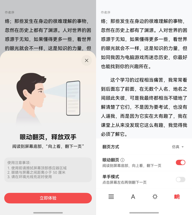 我下铺的兄弟则迷上了AI眼动翻页。这家伙喜欢一边吃泡面一边看书,手上油乎乎的,压根没法碰屏幕。开了这个功能后,他只要盯着页面底部眨眨眼,页面就自动翻了,简直是为“懒人”和“忙人”量身定做的神器,彻底解放双手,读书一点不耽误吃吃喝喝。