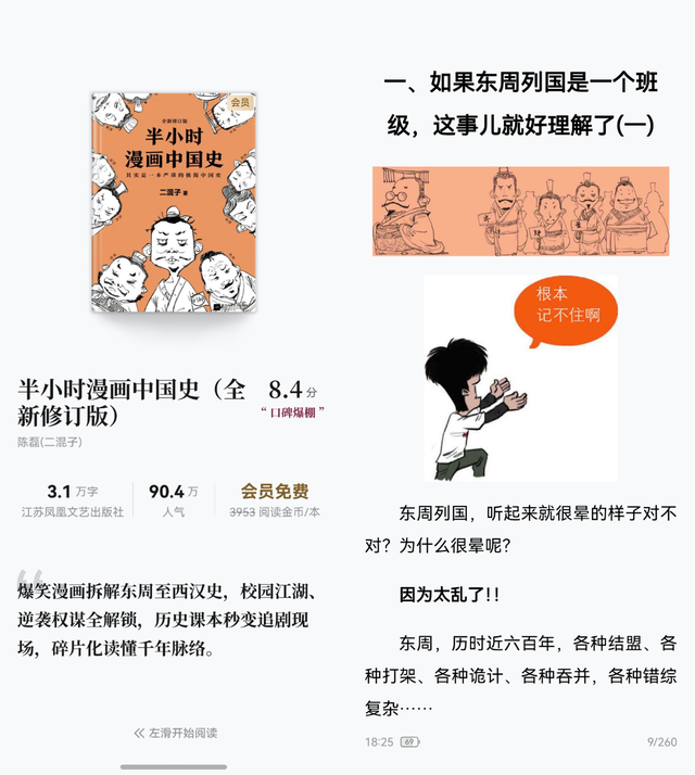 最让我们觉得方便的是跨设备同步。我在教室用手机看《半小时漫画中国史》做的笔记和划的重点,回到宿舍打开平板,进度一丝不差地同步过来,无缝衔接继续看。鸿蒙系统把我们的手机、平板都串了起来,读书体验真的流畅。