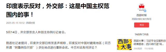 外交部发言人林剑5月14号也说了,藏南自古以来就是中国的,历史和法律上都有根据,这些标准化的地名,很多本来就是当地门巴族、藏族老乡们祖祖辈辈叫下来的,是板上钉钉的历史事实。