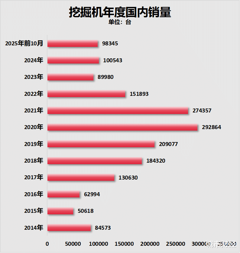 以此预计,今年全年挖掘机内需销量大概率能突破12万台,全年挖掘机出口规模逼近11万台,两项数据都会超越2024年。