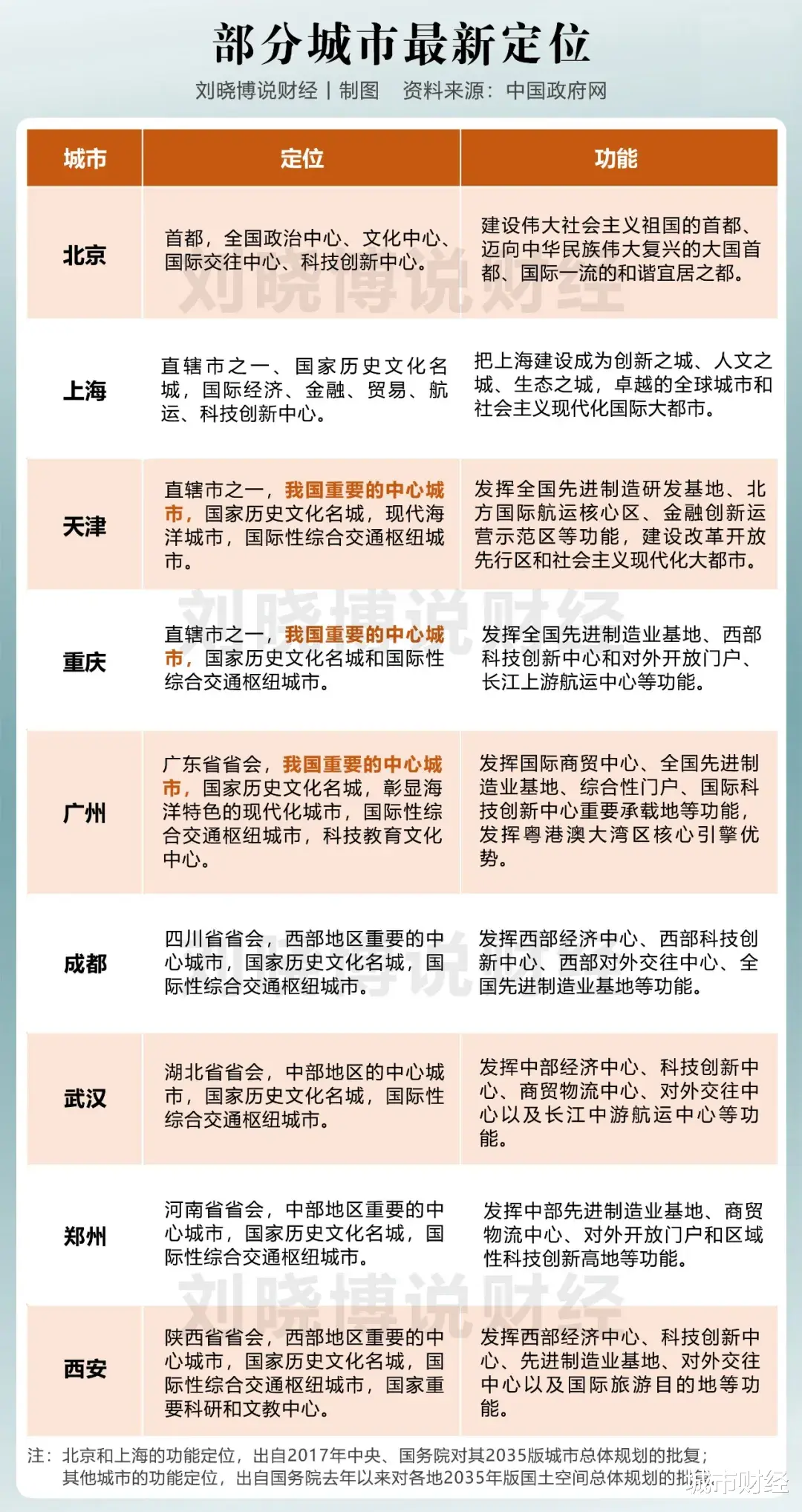被明确定位为国家中心城市的城市只有天津、重庆、广州,而北京、上海更是高于国家中心城市的定位,自然也在其中。