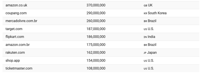 榜单显示,亚马逊旗舰网站amazon.com月访问量高达27亿次,占全球前20大零售网站总访问量的四分之一,其生态体系涵盖印度、日本、德国等区域性站点,强大的全球影响力为其2.3万亿美元市值提供了坚实支撑。