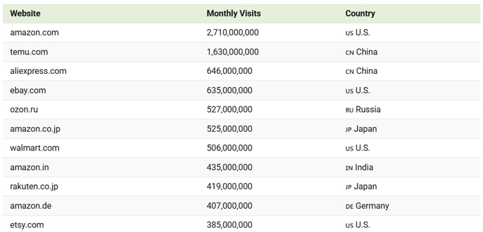 2025电商访问量:亚马逊第一,Temu、速卖通紧随其后