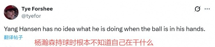 当初给王哲林取外号就“王奶奶”,现在给杨瀚森取名叫“杨奶奶”,估计这是一帮人所为。杨瀚森确实慢,你要觉得你快,那你去NBA打球啊,你行你上,不能光当一个对社会没有贡献的键盘侠。篮板球和体重问题确实应该改变一下,这一点咱们不避讳,有问题就敞敞亮亮的说,不要上升到人身攻击。