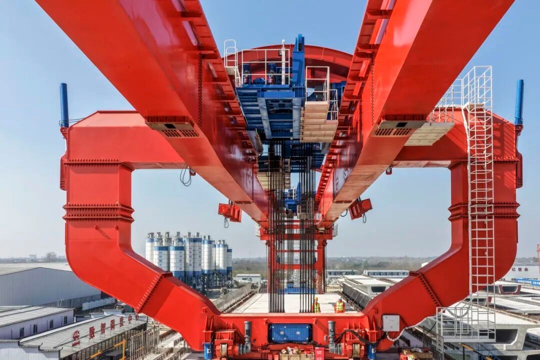 此次架设的箱梁全长32.6米,重约700吨。架设作业选用荷载能力900吨的专业架桥机,其最大架梁跨径可达32米,完全适配工程需求。为确保首榀箱梁精准、安全就位,项目部成立架梁指挥中心,启用提运架一体化专项施工方案,统筹技术、安全和设备管理,通过全流程闭环管控,实现架梁作业的动态监测与精准调度。