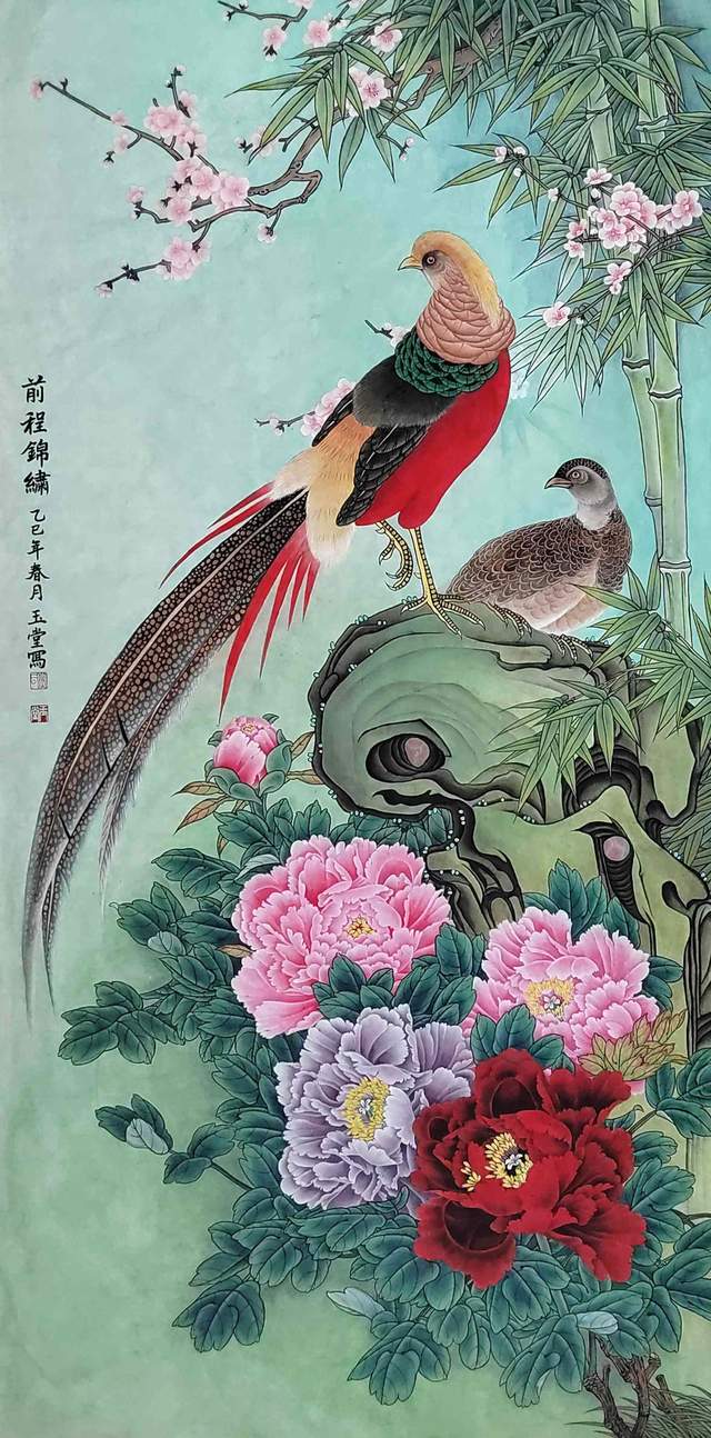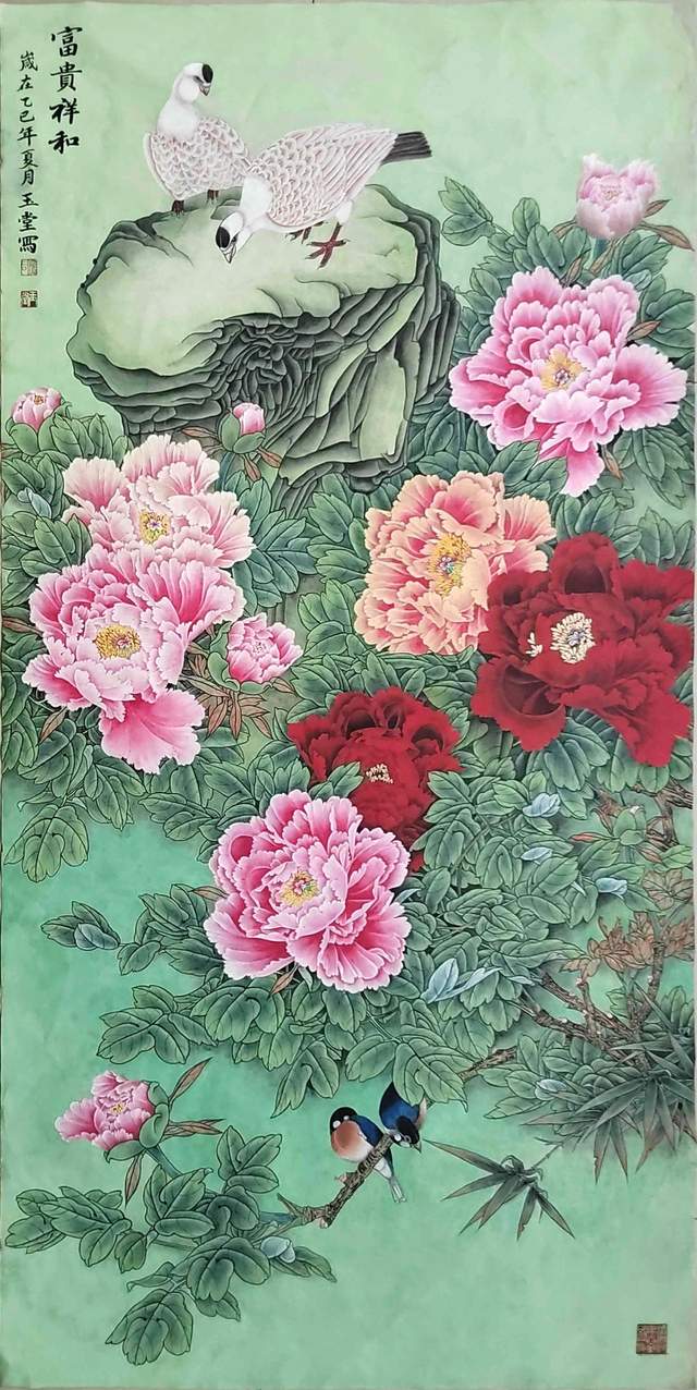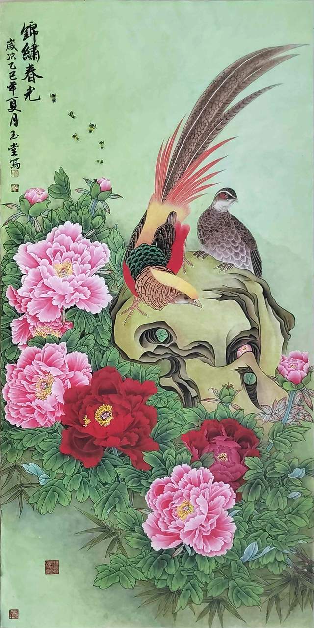 熊玉堂先生自幼喜爱书画,工作之余悉心研习,孜孜不倦,努力追求雅俗共赏的审美境界,至诚践行自己的艺术主张,并取得了骄人的业绩。其工笔花鸟画重形重意,气格不凡,融天气于物象,开辟出独树一帜的笔墨画风。所绘牡丹、荷花等花卉集天地之灵气,花色艳丽,风姿绰约,富贵雅逸之气惹人喜爱。此外他笔下的鸡、鱼、鸟等动物画得是惟妙惟肖,充满了灵动的生命力,与花卉相映成趣,饱含浓郁的中国传统文化韵味。出版过熊玉堂作品集多次,作品曾多次参展并获奖,还多次被各地美术馆和企业家等收藏。