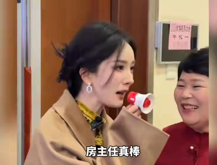 更令人惊喜的是,杨幂不仅配合录制视频,还主动聊起房主任的脱口秀事业,询问演出安排,并表示“有机会想去现场看”。这一细节被网友盛赞“情商高”“暖心”,而她手持伴手礼喊话“房主任真棒”的画面,更被调侃为“粉丝头子认证现场”。