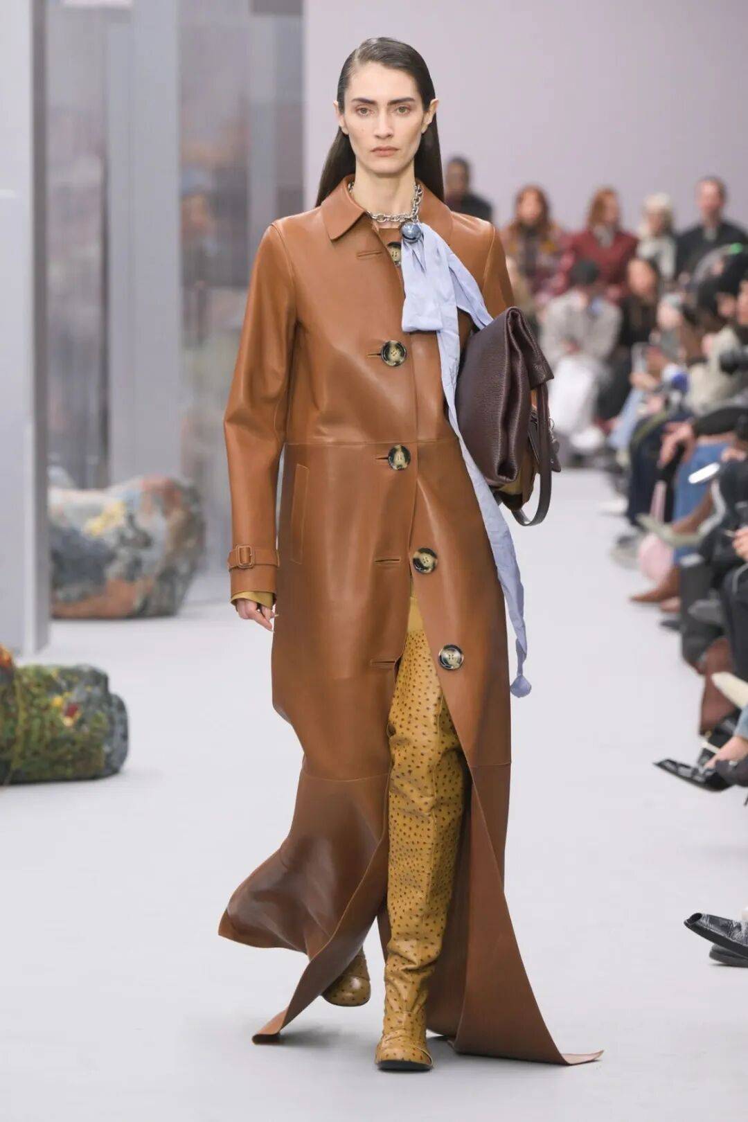 豹纹的张扬、蛇皮的冷冽、斑马纹的律动、鳄鱼皮的厚重,每一种纹理都在叙述一种力量感,与宽肩西装、垂坠的针织裙自然融合。
