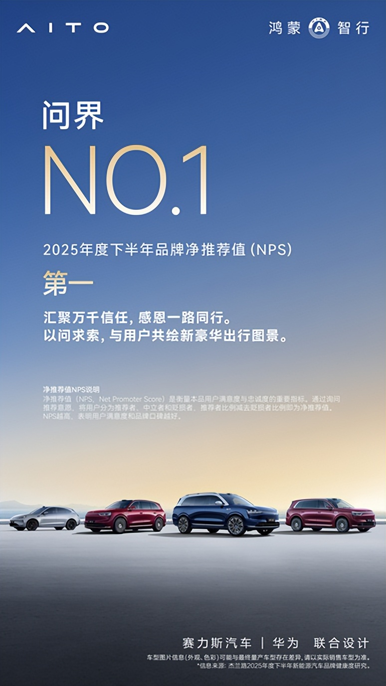 基于用户的信赖与选择,问界的用户口碑和品牌影响力也持续攀升,问界连续三次蝉联品牌发展信心指数第一,成为高端汽车市场中第一个、也是唯一一个连续三次获得品牌发展信心指数第一的品牌。