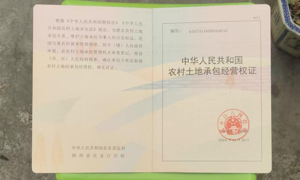 (李泽文持有的土地承包经营权证照片,证明土地权属)