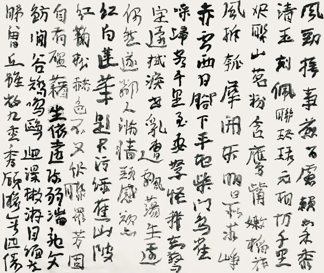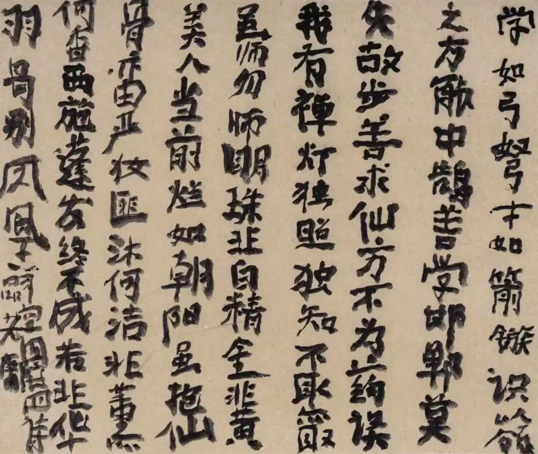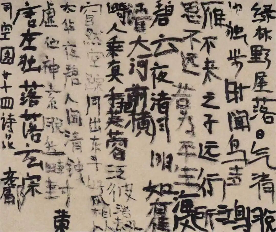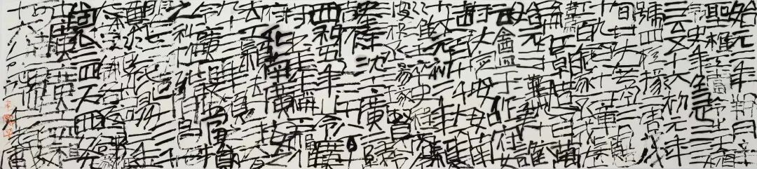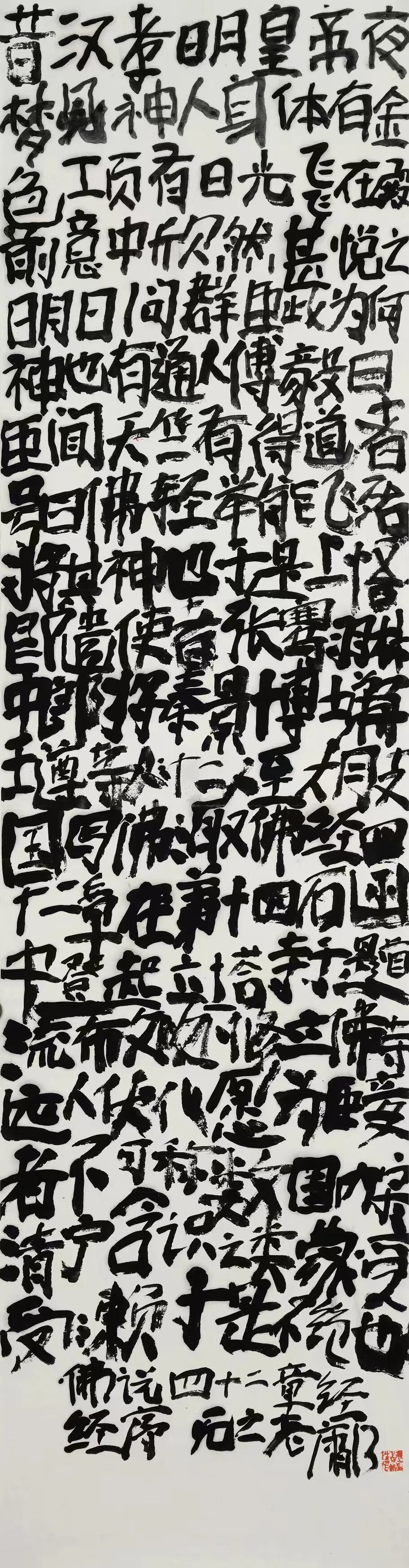 此乃他“奇”之根本。他的书法,取法高古,深扎于汉魏的碑刻摩崖、造像题记之中,将民间书风的生拙之趣,化为了自己笔下的清奇筋骨。结字常出入意料,章法安排又新颖别致,全然不落俗套。更绝的是,他竟能左右开弓,左手挥洒之作,与右手相比毫不逊色,反倒平添了几分天真烂漫的意趣。我曾观他临摹日本良宽和尚的字,笔下空灵洒脱,既见古法,更见真性情。于他而言,写字非苦役,而是酣畅淋漓的笔墨游戏,真草隶篆行,五体皆能,无怪乎能成为青年书手独一面的旗帜。