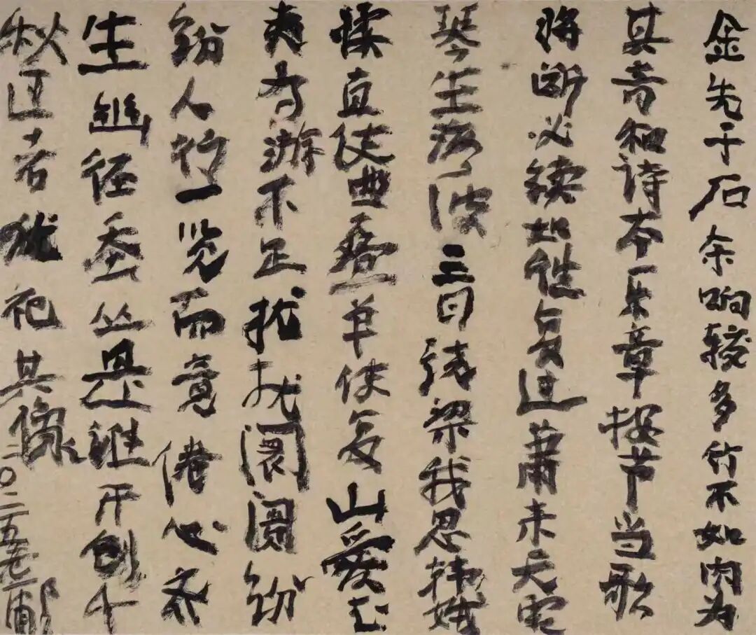王墉兄的相貌,颇有古意。一头齐肩“秀发”,垂顺得像是做过“离子烫”,额角饱满隆起,眼窝深邃,组合起来,竟带几分上古“元谋人”的雄浑气韵。我曾寻思他这面相,定是私下里临摹了太多史前刻符,不知不觉“逆进化”了,要与古人神交。貌奇至此,令人过目难忘。