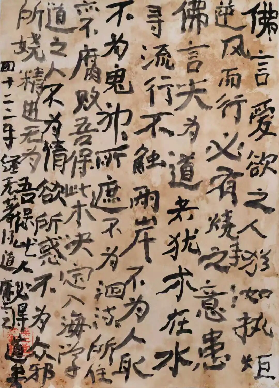 若你以为他只会自己舞文弄墨,那便小瞧他了。王墉兄于书法教学一道,在业界可谓赫赫有名。昔日他曾组建“魔鬼训练营”,以其独门秘法,将一众学子淬炼成“国手”,频登国展龙虎榜。如今,他更是在多家高校的书法学院传道授业,真个是桃李满天下。其教学方法,仿佛手握通关秘籍,学生若能得其真传,作品入展便如探囊取物一般。教奇,是他“志于道”的最佳明证。