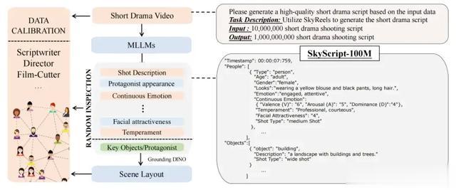事实上,不仅仅是剧本,文本大模型也是整个创作流程的重要支柱。一些微短剧编剧曾尝试使用ChatGPT生成剧本,但发现最终的结果缺乏情感张力和剧情变化,仅仅是平铺直叙的文字堆砌。为了解决这一问题,昆仑万维构建了亿级高质量短剧结构化数据集SkyScript-100M。该数据集对海量精彩短剧的剧情节奏、爽点和情绪变化进行了精细标注,专为剧本创作而设计。