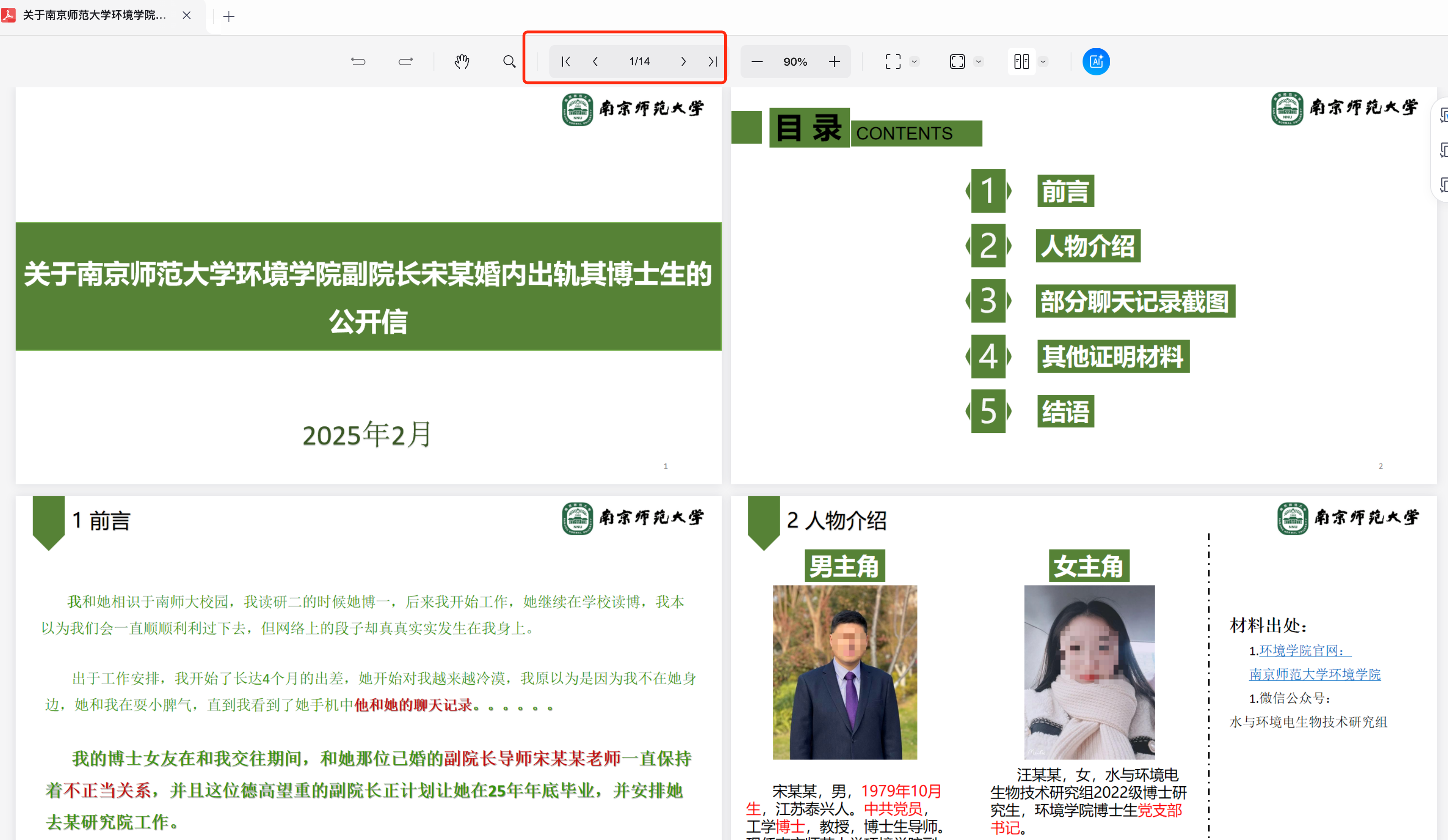 最近,南京师范大学发生了一起引起广泛关注的事件。事件涉及一名女博士汪某某和她的已婚副院长导师宋某某之间的不正当关系。这一事件被女博士的男友通过一份14页的PPT公开揭露,这份PPT在社交媒体上迅速传播。