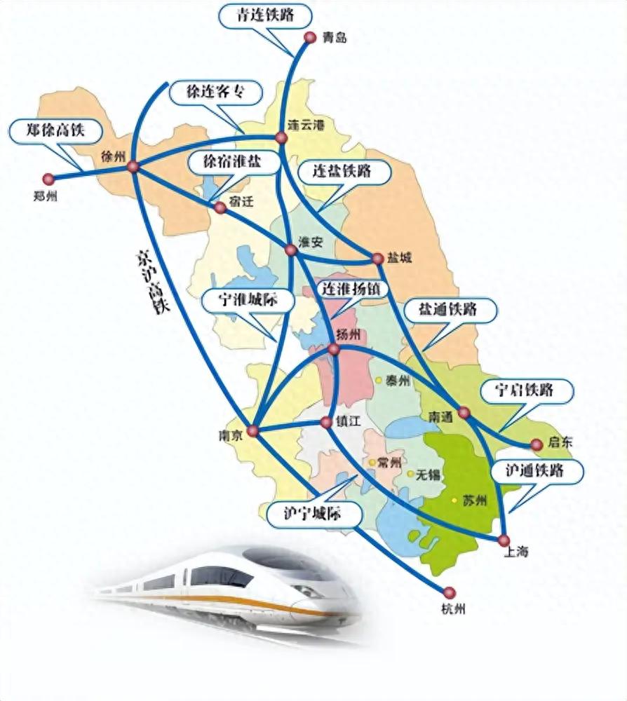 ②连镇高铁淮安至扬州段:同样为250公里标准,2020年全线贯通,极大缩短了苏北、苏中与苏南的时空距离 。