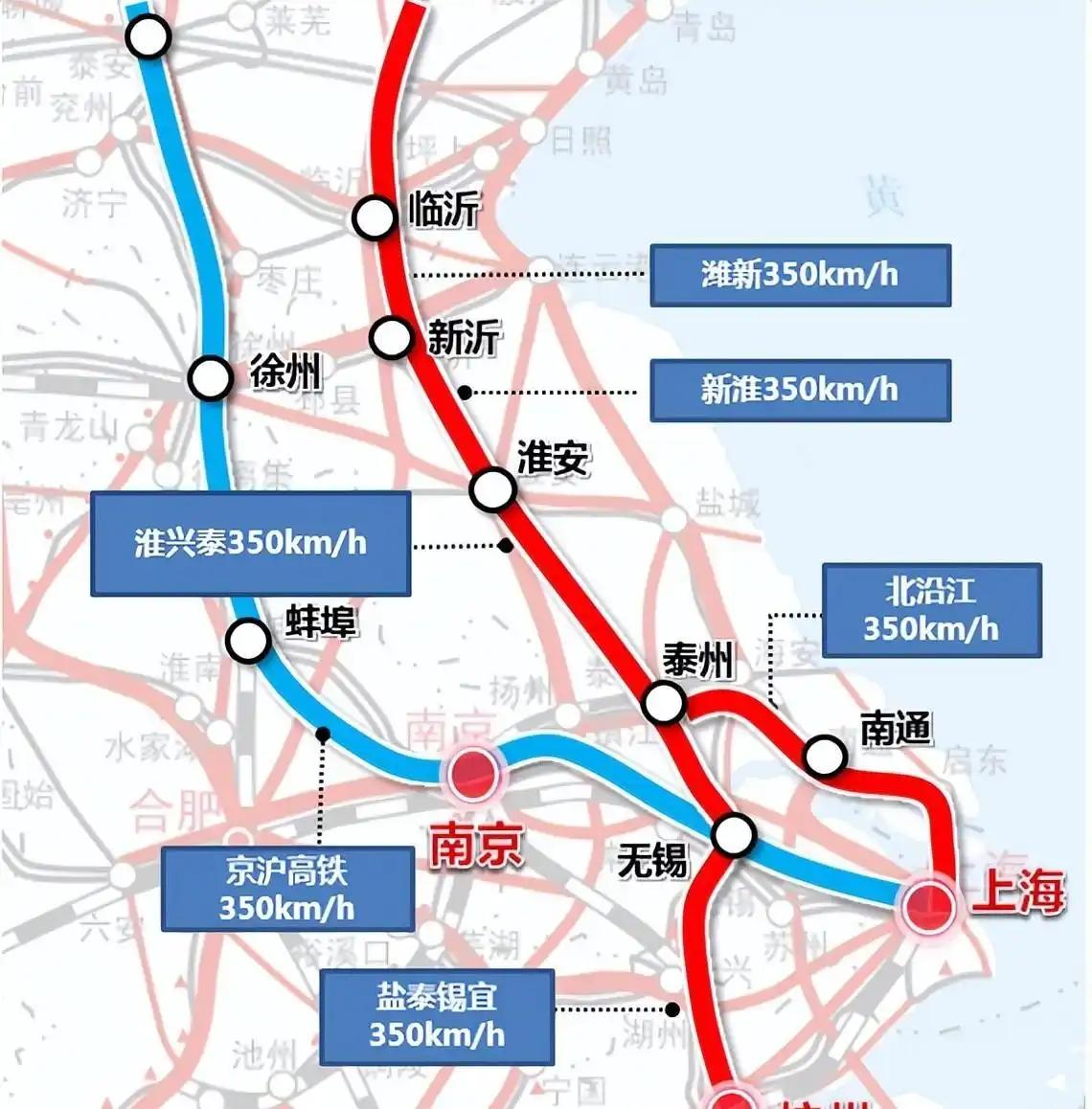 后期这两条线路一旦建成,将与北沿江高铁(扬州—南通—上海段)无缝衔接,在江苏境内构建一条独立、连续、350公里/小时的京沪辅助通道,不再依赖既有250公里线路,大幅提升京津冀—山东半岛—长三角之间的通行效率。