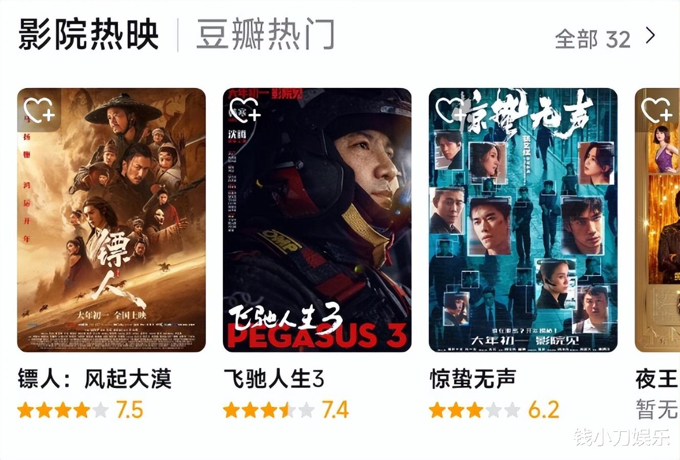 此前被广大网友们普遍吐槽的《镖人》,也开始默默逆袭,先是排片量超过了《惊蛰无声》,接着豆瓣评分又赶超了《飞驰人生3》。