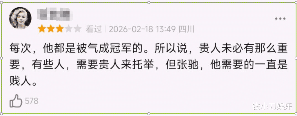 有观众评价《飞驰人生3》:每次男主都是被气成冠军的,所以说贵人未必有那么重要,有些人需要贵人来托举,但张弛,他需要的一直是贱 人。