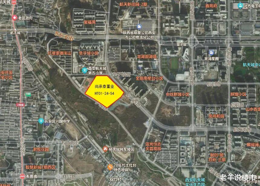 另外,航天基地地块(HT01-24-54)103.777亩的土地面积,容积率1.96,楼面价8462元/㎡,由西安尚承泰置业有限公司摘得,从股权看似乎有曲江国资的身影,从土地方面看,少陵塬独特的地理位置,豪宅改善属性明确,紧邻地块的有航天第五小学、航天第七小学。