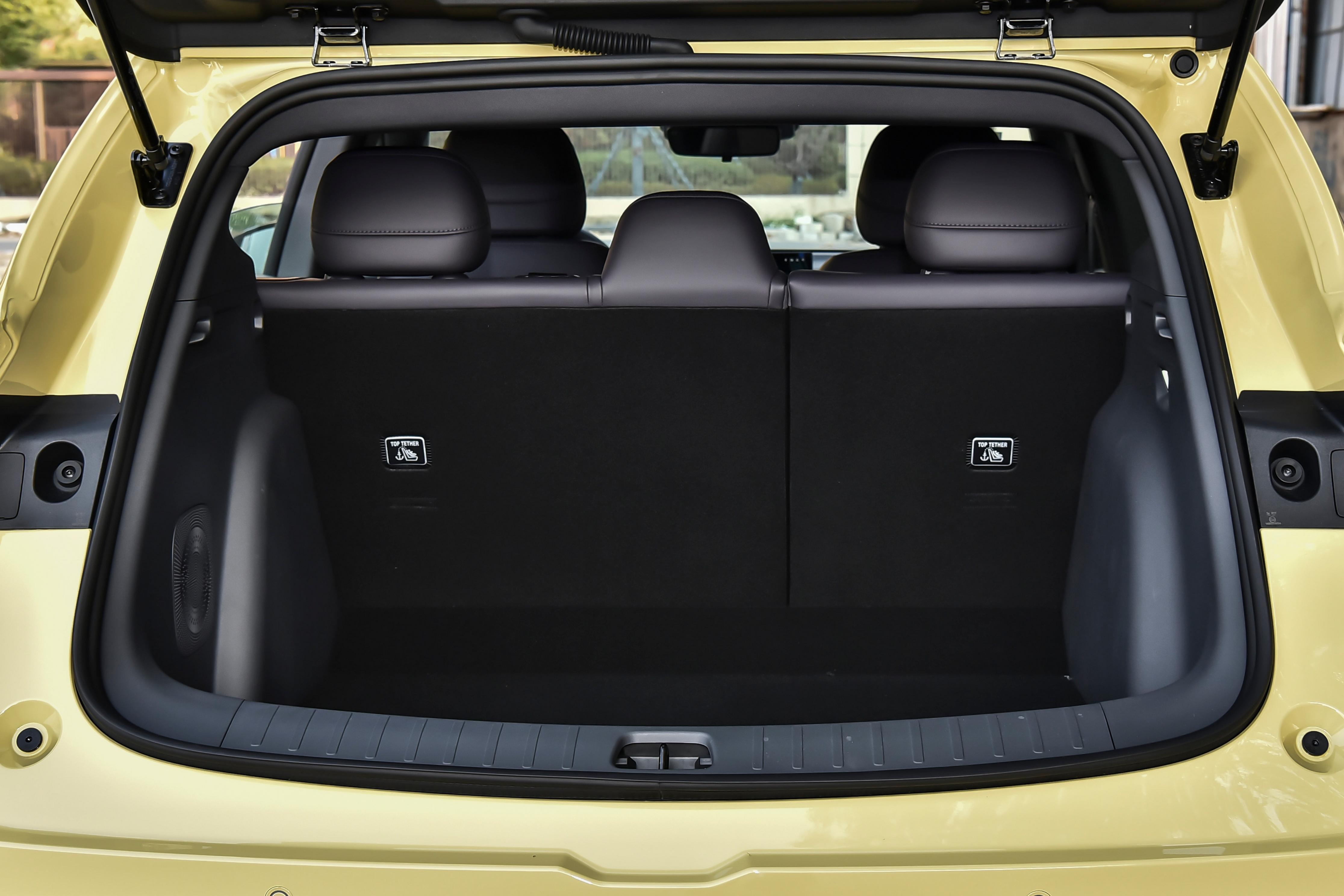 走到车尾,设计风格和前脸相互呼应,同样走简洁运动的路线。贯穿式尾灯和前脸的日间行车灯形成呼应,夜间点亮后辨识度很高,能有效提醒后方车辆。后备箱采用掀背式设计,开口尺寸宽敞,日常取放行李箱、购物袋都很方便,底部还做了造型设计,进一步提升了运动感。