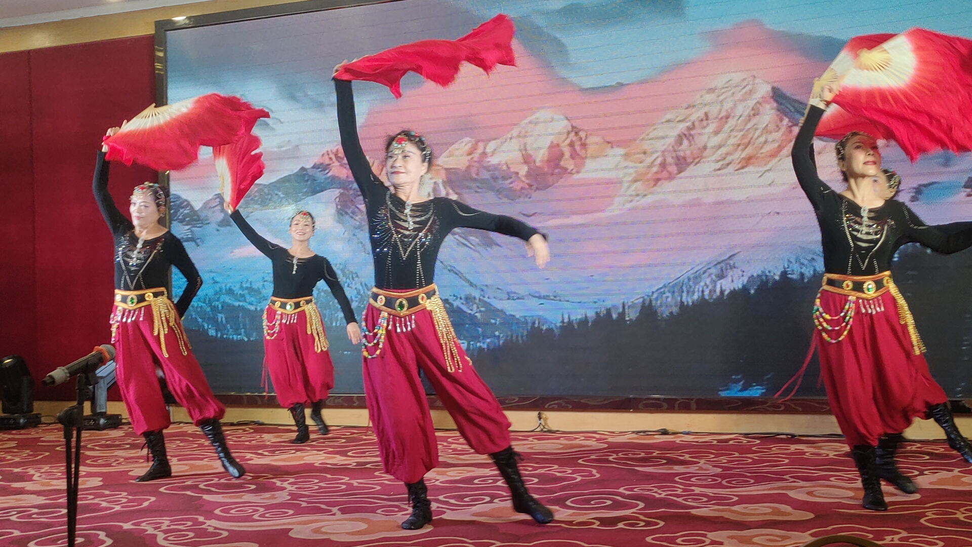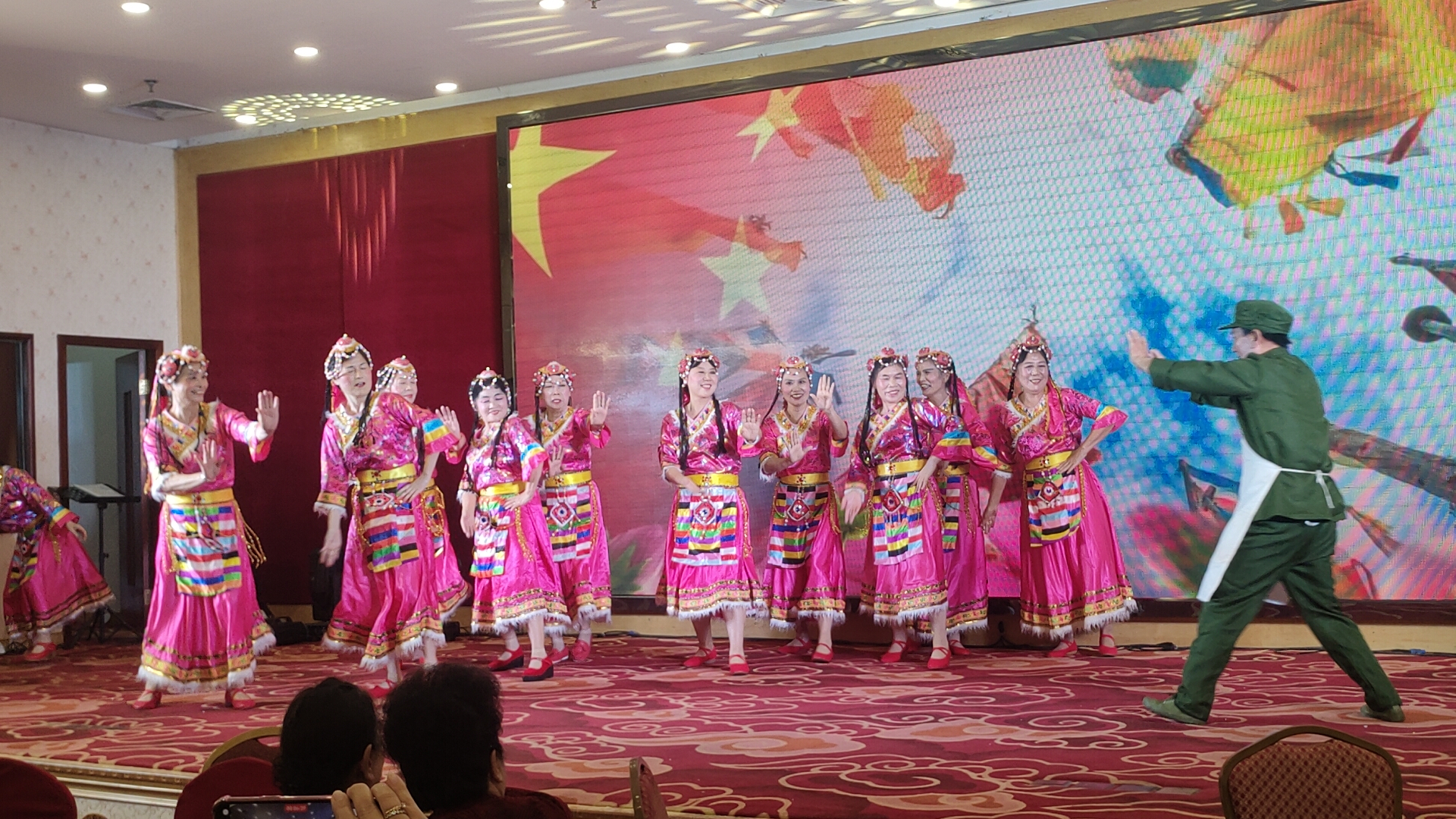 紧接着,舞蹈《今天是你的生日 我的中国》由永乐艺术团刘腰团长、林亚玲等舞蹈组成员表演,舞步庄重深情,饱含对祖国的赤诚祝福;何耀祥与林银招联袂献上蒙古舞《牧民新歌》,舞姿洒脱奔放,尽显民族舞蹈的独特韵味,成为舞台上一抹亮眼的风景;巴苏带来男声独唱《最美的歌唱给妈妈》《桃花依旧笑春风》,歌声深情婉转,搭配何建红等成员带来的伴舞,视听效果俱佳,将现场氛围推向新的高度。