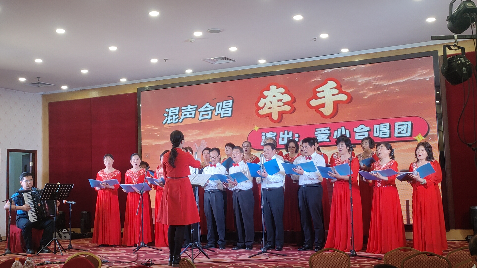 后续的节目依旧精彩纷呈,轮番上演。梁梅娜等表演的舞蹈《洗衣歌》活泼欢快,充满浓郁的民族风情;韩秀梅等带来的舞蹈《爷爷奶奶和我们》温馨有趣,尽显生活的幸福美好;施小婉、万青等演绎女声小组唱《祝福祖国》,手风琴庄理晖伴奏,歌声柔美深情,抒发了对祖国的祝福;手风琴庄理晖伴奏,王玲玲指挥,爱心合唱团张李瑞等带来大合唱《牵手》《我心挚爱》,歌声温暖治愈,传递出相伴相依的真挚情感。