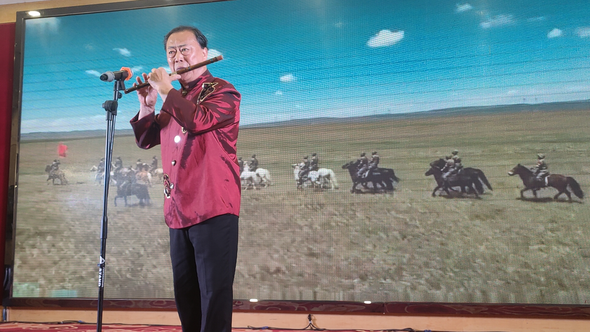 接着,张建平献上笛子独奏《扬鞭催马运粮忙》,笛声清脆悠扬、节奏明快,尽显传统竹笛的艺术魅力;最后,侯宝荣等带来舞蹈《苍穹唤》,舞者们以精湛的舞姿、饱满的情感完成精彩演绎,为整场文艺汇演画上了圆满的句号。全场观众沉浸在这场视听盛宴中,掌声、欢呼声、祝福声连绵不断,现场处处洋溢着温馨、喜庆、欢乐的氛围。