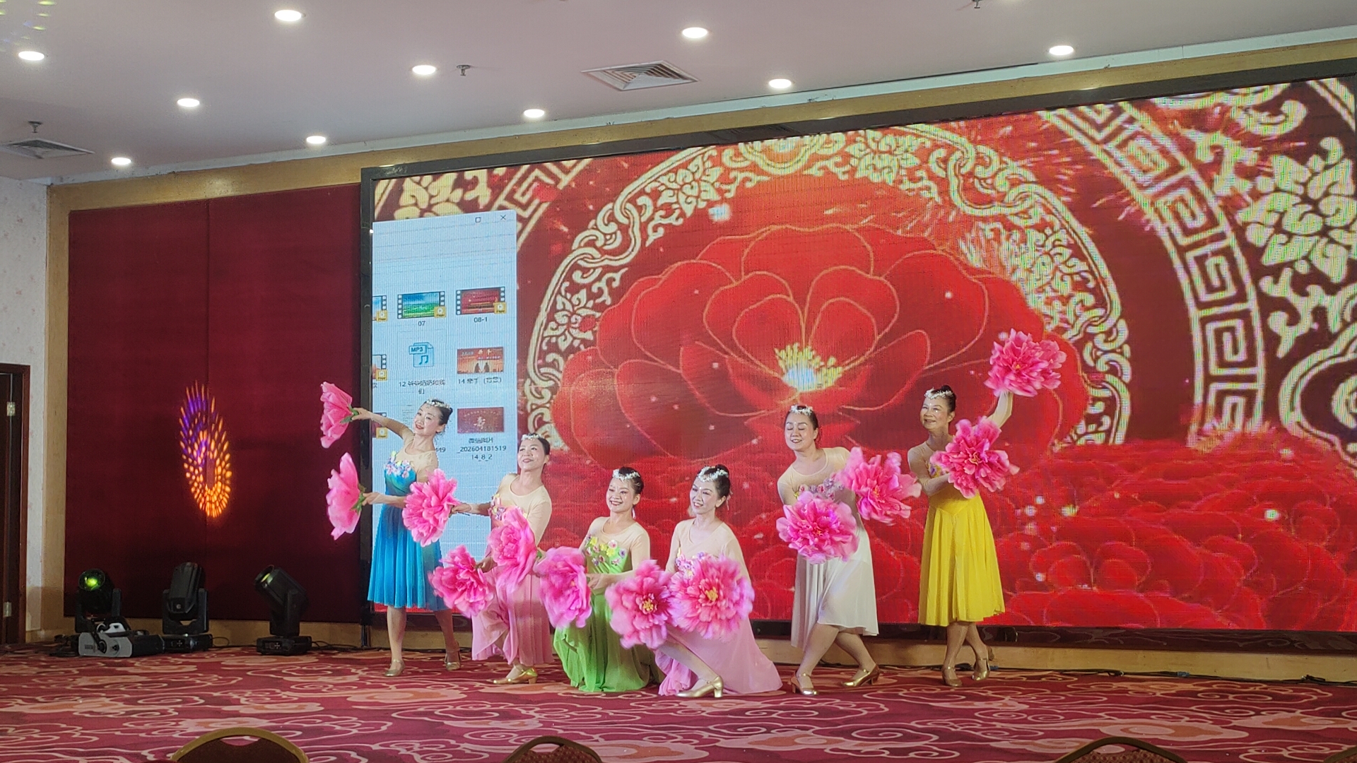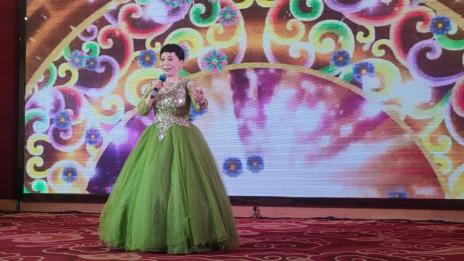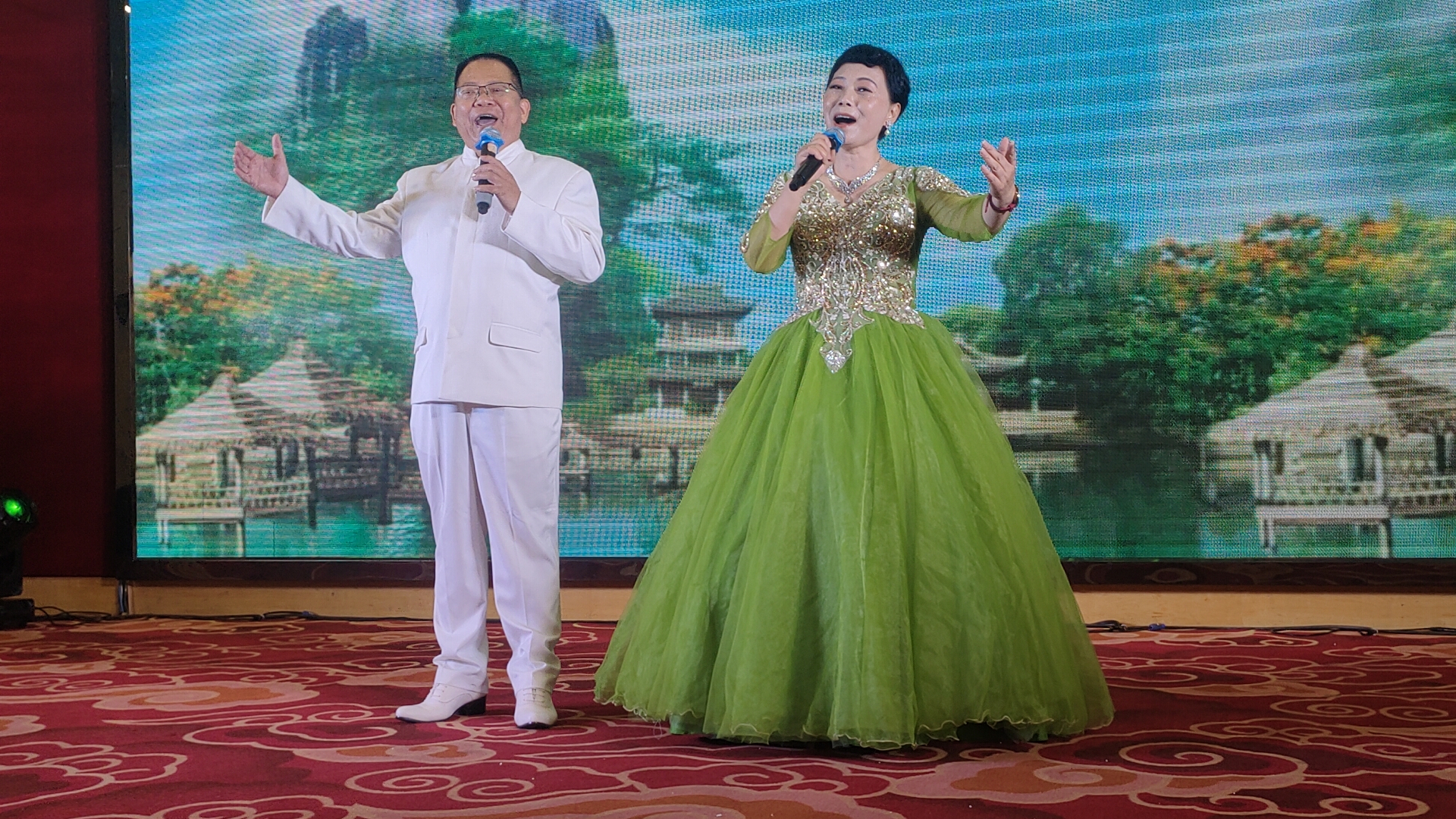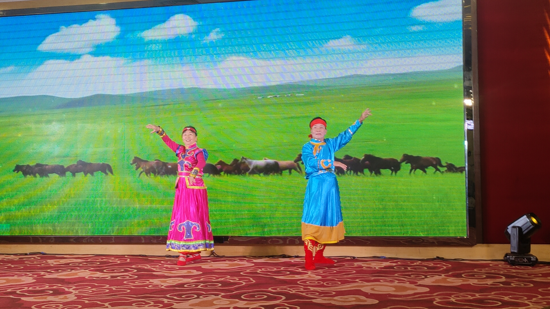 舞台之上,歌舞交融,高潮迭起。爱心舞蹈队带来舞蹈《花开时节》,舞者们身姿轻盈、舞步优美,宛若繁花绽放,尽显灵动之美;傅红伟带来男声独唱《草原上升起不落的太阳》,嗓音浑厚嘹亮,将草原的辽阔与豪迈展现得淋漓尽致。随后,傅红伟与水云携手带来男女对唱《谁不说俺家乡好》,二人歌声默契相合,唱出了对家乡的深情眷恋,打动人心。