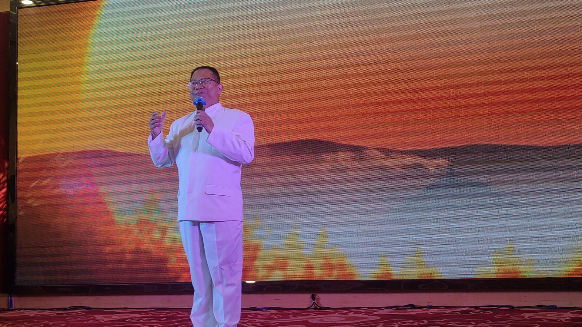 活动在主持人大吉先生热情洋溢的开场白中正式启幕,首先,爱心艺术团团长何耀祥先生上台发表讲话,满怀深情地感谢各位来宾、艺术团成员及亲朋好友的莅临与陪伴,回顾了自己前半生深耕教育沃土,怀揣着对教育事业的赤诚与热爱,在三尺讲台上坚守了几十年;其后,投身文艺事业、组建爱心艺术团的艰辛历程,言语间满是对文艺的热爱、对团队的珍视,以及对到场所有人的由衷谢意,真挚的话语打动了现场每一位观众。