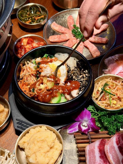 烤鳗鱼现杀现烤,外皮微焦内里鲜嫩,裹海苔姜丝吃;芝士肥牛卷奶香浓郁,辣鸡爪炖得软烂,甜辣口很解腻。