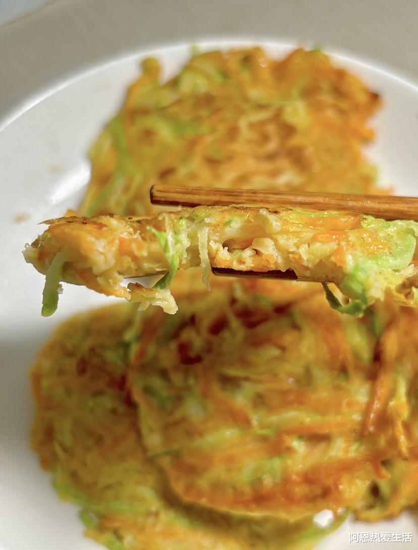 小技巧:蔬菜一定要擦细丝,别切粗条,不然煎的时候容易夹生,口感也不好;不爱吃葱的可以不放,加少许虾皮碎,鲜味儿更足,还能补点钙。