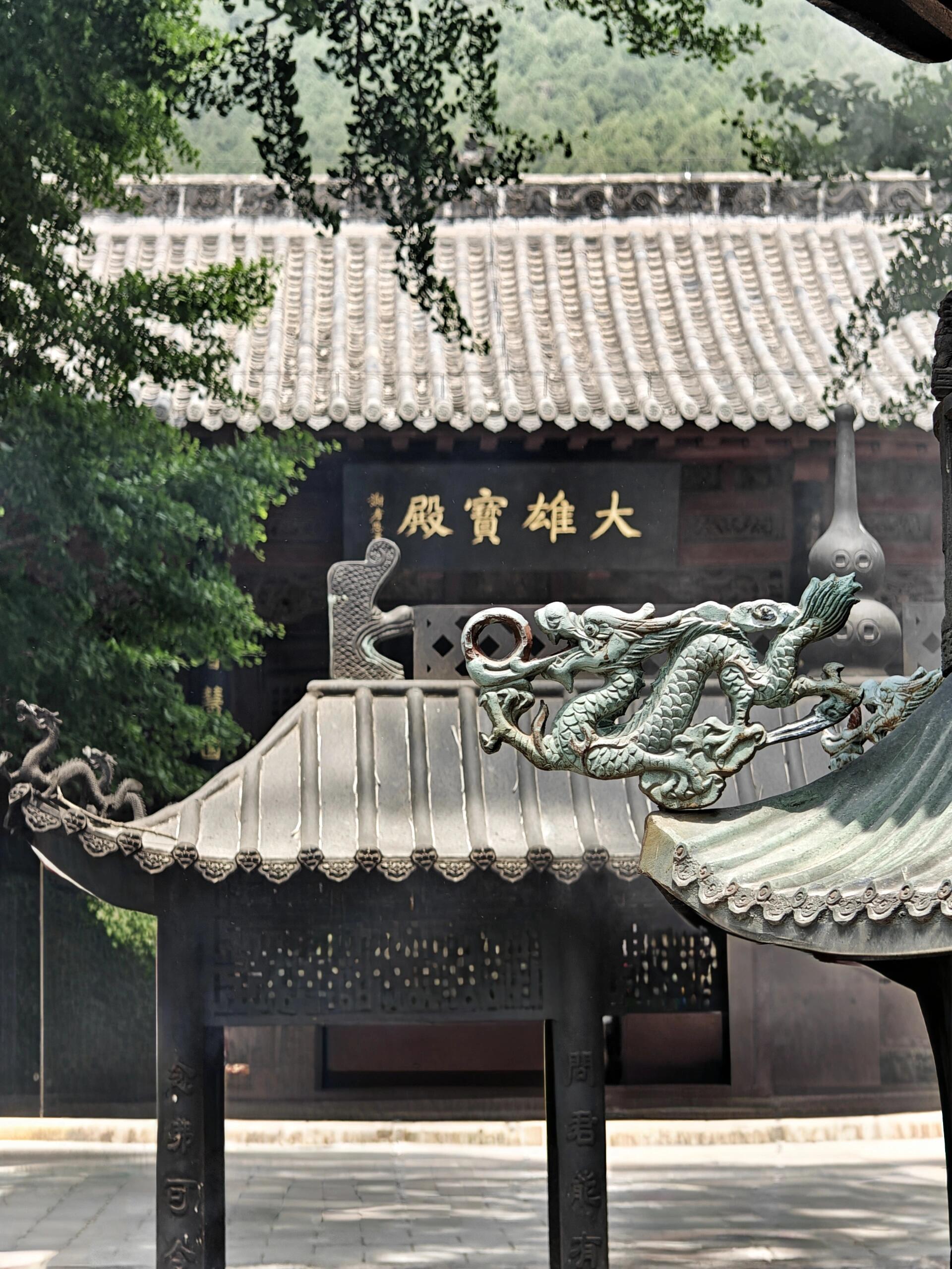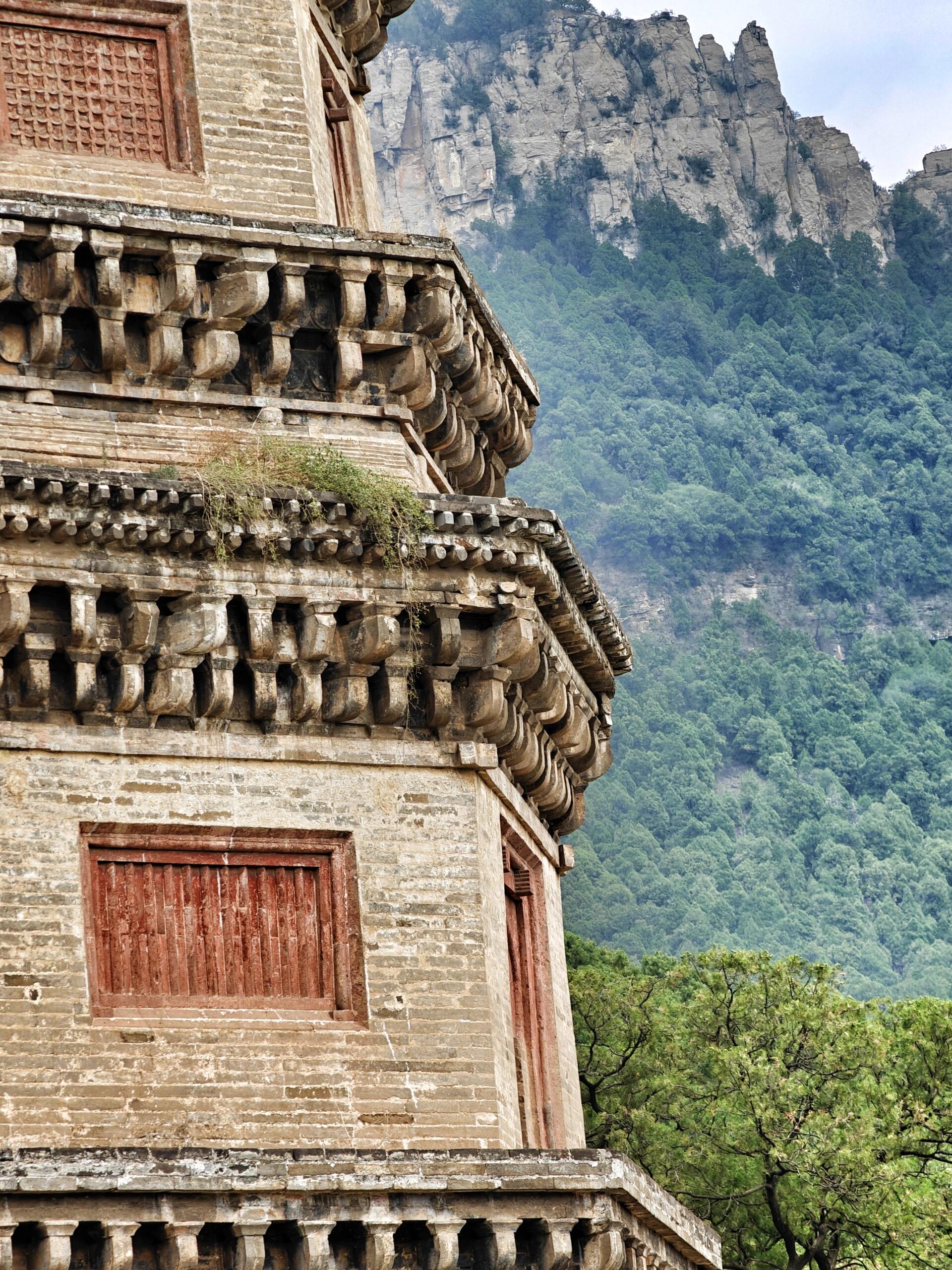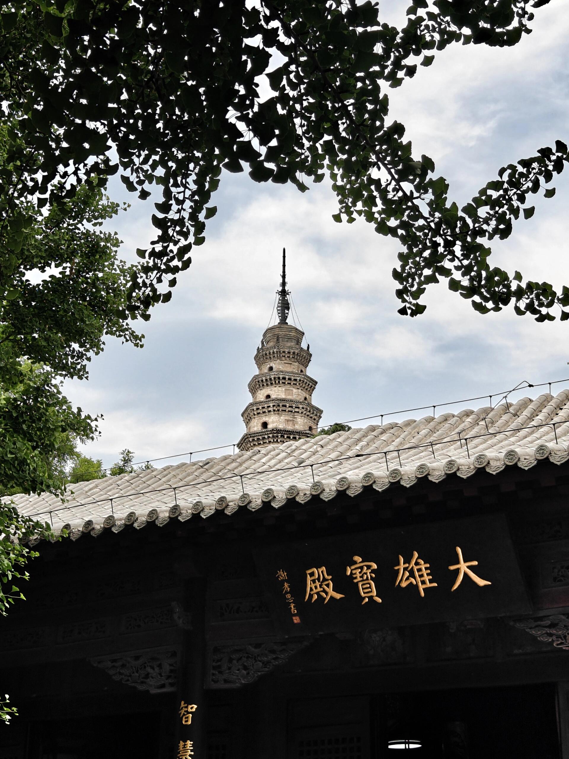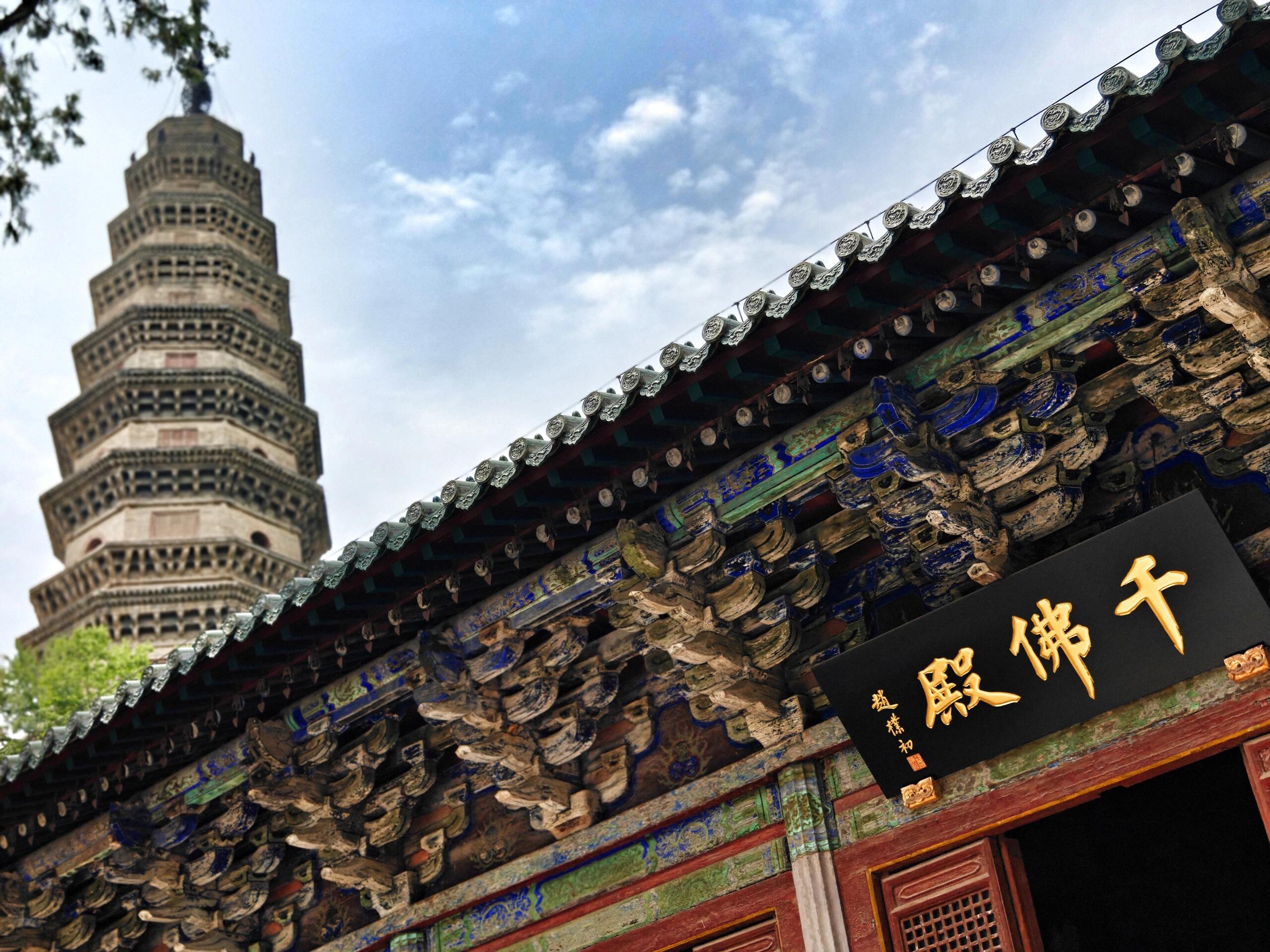 千佛殿本身也是一部建筑史,初建于唐贞观年间,现存为明嘉靖年间重建,单檐庑殿顶,规制极高。殿内斗拱、柱础仍存唐宋旧物,木构件上还留有明代重修的墨迹,时代层叠清晰可见。唐宋的础石、明代的梁架、宋代的塑像,共处一殿,这种跨越朝代的完整共存,在国内寺院里并不多见。大雄宝殿原为宋代献殿,年代可追溯至崇宁大观年间,历经修缮,风骨犹存。慧崇塔建于唐天宝年间,是高僧慧崇的墓塔,形制古朴,是山东境内少见的唐代亭阁式石塔,造型简练,气质高古,一眼就能看出盛唐气度。