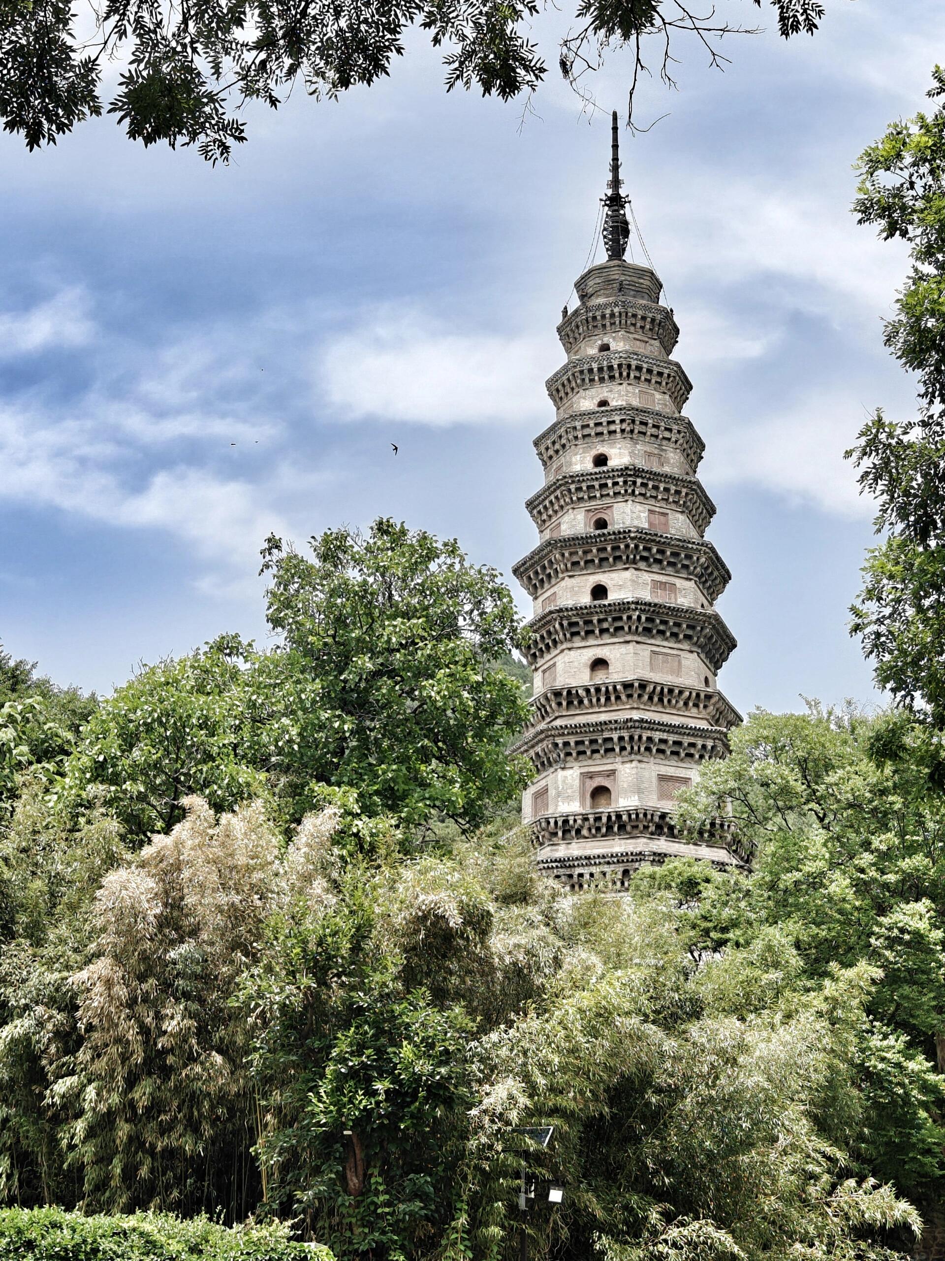 辟支塔是灵岩寺的精神坐标,这座始建于唐、重建于北宋的密檐楼阁式砖塔,是北方宋塔里少有的精致与雄浑并存的作品。塔基石刻讲述古印度阿育王皈依的故事,线条流畅,人物生动,是宋代工匠留给后世的无声讲述。塔身层层收分,挺拔却不凌厉,稳重又不失灵动,千百年来,它看着寺院兴废,看着僧来僧往,看着帝王仪仗与平民脚步,成了灵岩寺最沉默也最坚定的见证者。很多人拍照只拍外观,却很少有人愿意蹲下来细看塔基的每一幅浮雕,那些被岁月磨得温润的线条里,藏着一整个时代的信仰与审美。