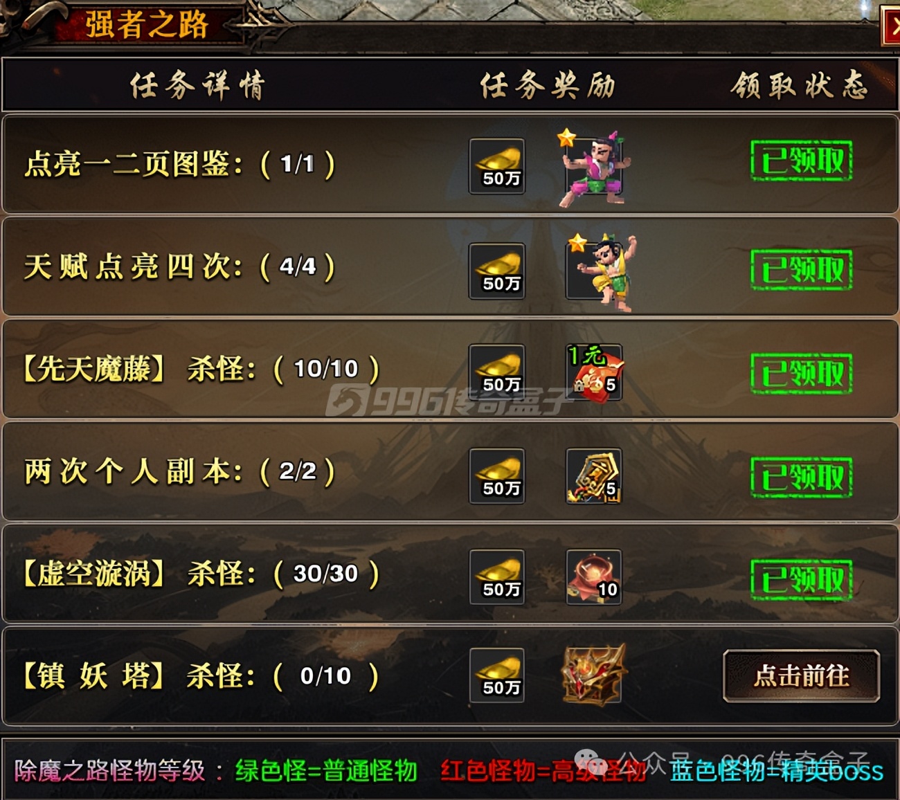 强者图鉴比较重要,刷怪做任务的时候击杀对应的怪,就能激活怪物图鉴,每点亮一个图鉴,可以获得切割、怪物爆率和天赋点,整页图鉴激活可以获得累充红包和切割属性!集齐图鉴的天赋点,可以在天赋页面进行升级,每个天赋点亮六次就可以激活属性,优先升级攻击天赋。使用天赋点达到一定点数,可以解锁专属天赋BUFF,这几个BUFF比较适合PK!