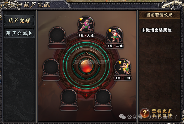 除了这些,需要升级的功能也不少,一大陆的飞天连斩会像飞剑一样绕身飞舞,提升等级可以解锁属性。还有切割神器,消耗货币和材料提升。二大陆会新增灵宠玩法,消耗元宝和灵宠净化精元可以提升灵宠等级,加群切神技,等级越高,伤害越高,群切范围越广,技能CD越短,击杀怪物还会有更大的机率获得元宝和灵符!完成任务会送葫芦娃,七个不同星级的葫芦娃可以激活套装属性,这个葫芦娃也能合成,葫芦娃加元宝可以合成更高一级的葫芦娃,没别的毛病,就是有点费元宝!