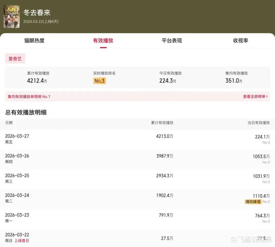 网播走势说明《冬去春来》已经失去了靠口碑逆袭的最佳窗口期了。