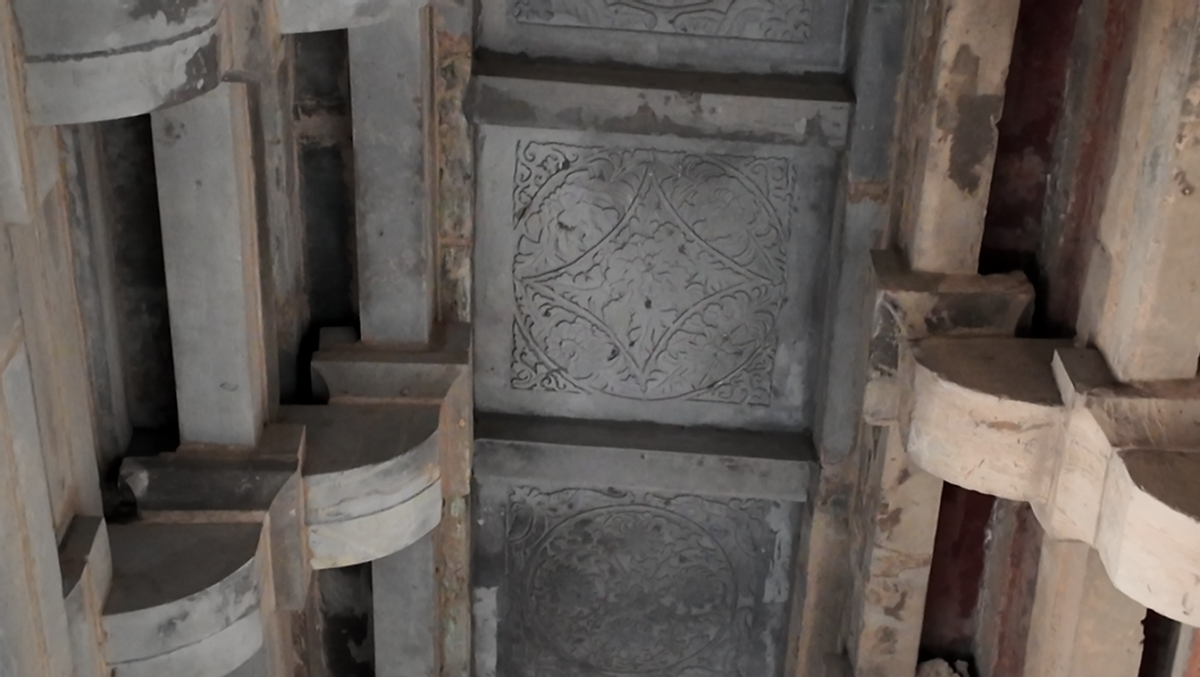 现在每天有六十个登塔名额,我曾有幸登塔体验。一层到三层间的楼梯极陡,好在有软绳作为扶手。塔内空间逼仄,多有石刻彩绘。券门处柏木横梁依然可见,条纹深邃见证着斑驳岁月。