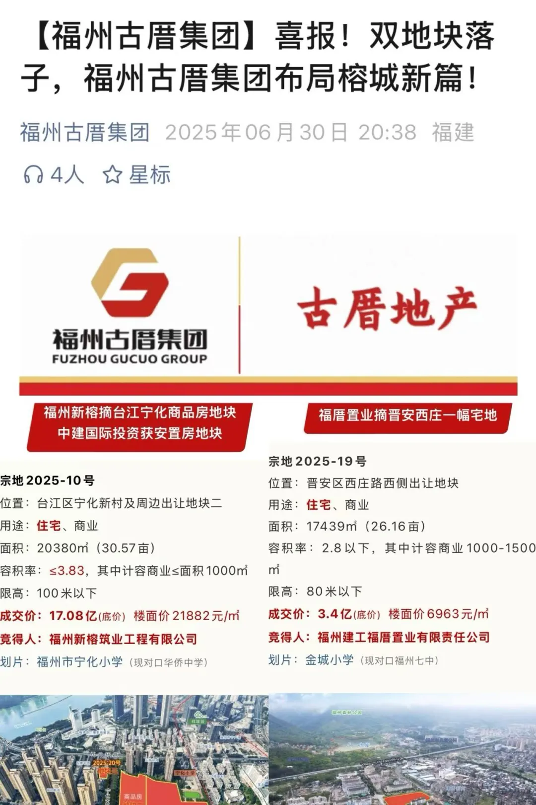 ▲6月底的福州城区百亿土拍,摘地的新榕、福厝,皆出自福州古厝集团旗下